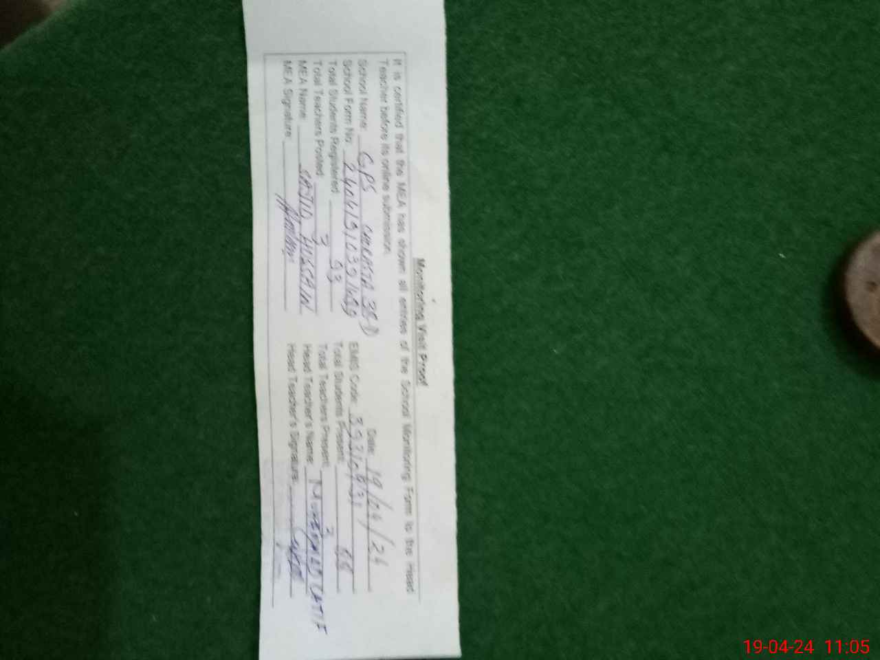 | Attendance Register | Head Teacher | MEA with School | Visit Proof |
