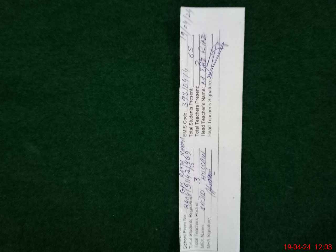 | Attendance Register | Head Teacher | MEA with School | Visit Proof |