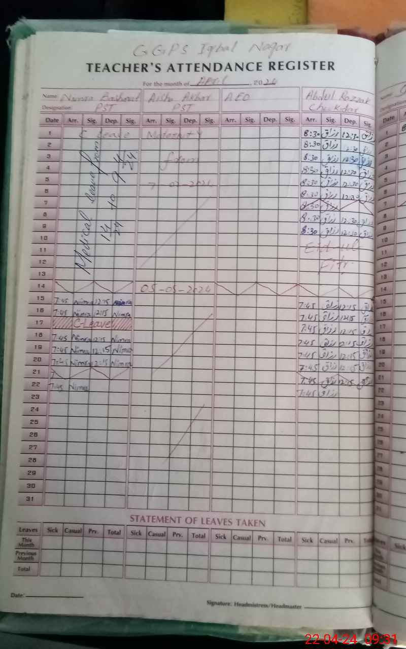 | EMIS Code: 31340613 | Name of School: GGPS IQBAL NAGAR | |||