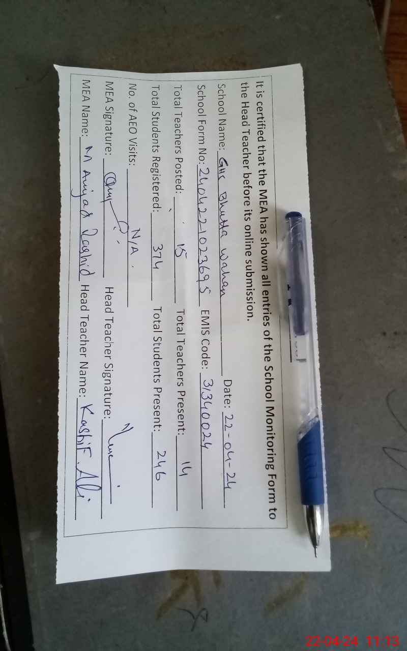 | EMIS Code: 31340024 | Name of School: GHS BHUTTA WAHAN | |||