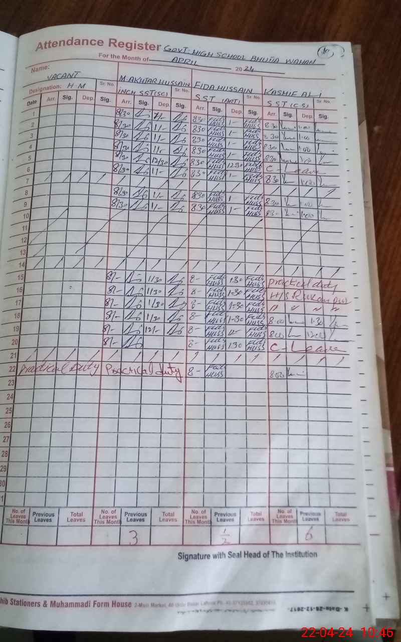 | 31**** | Mu**** Ak**** Hu**** | SST | Regular | 0 | 0 | 0 | 0 | 0 | 0 | 0 | 0 | 0 | Exam Duty |