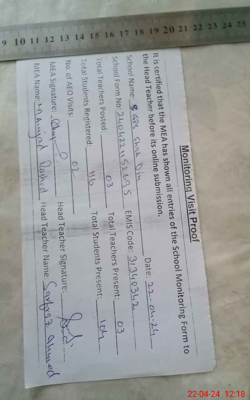 | EMIS Code: 31340342 | Name of School: GPS SHAH DIN | |||