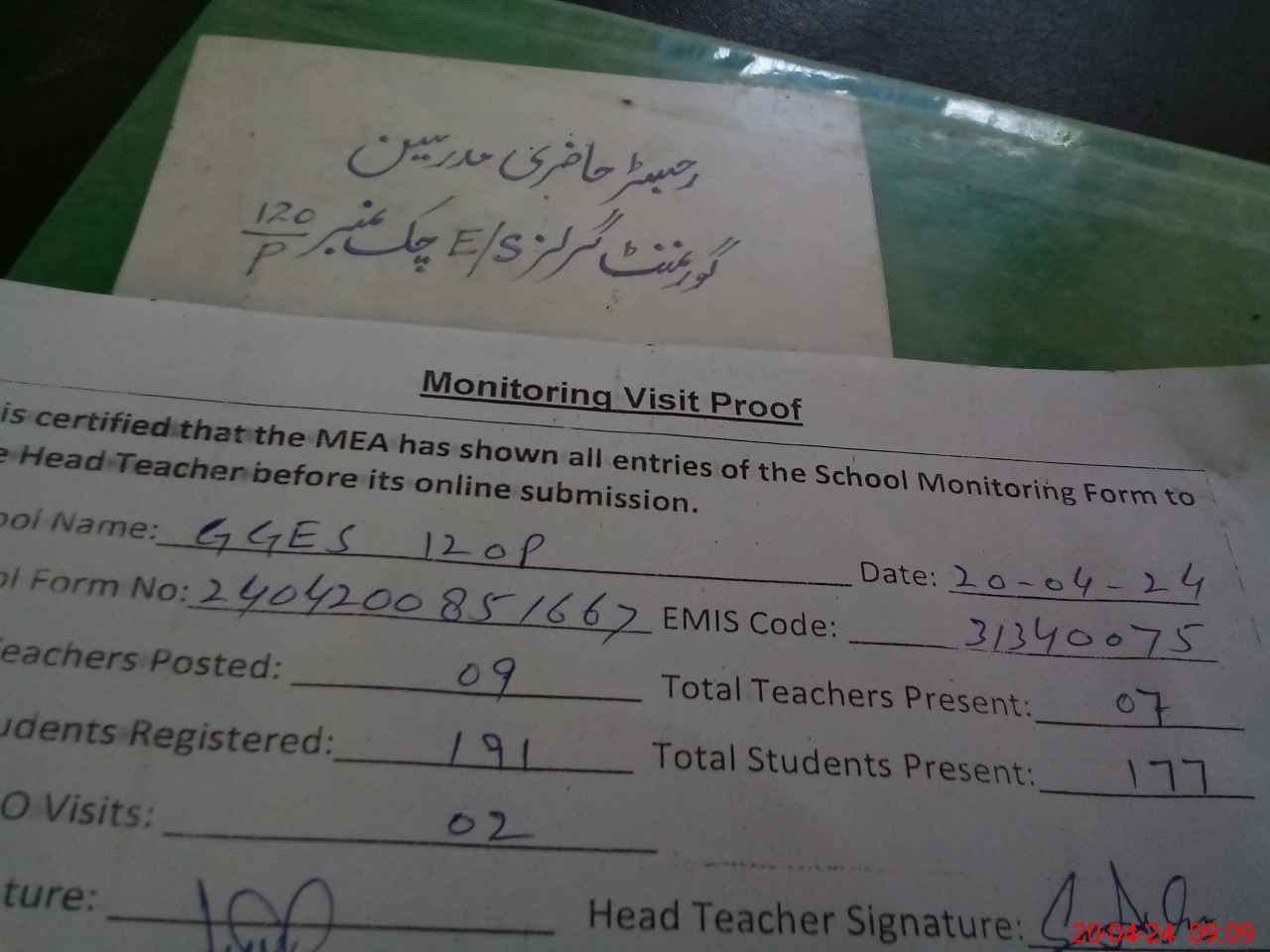 | EMIS Code: 31340075 | Name of School: GGES CHAK 120/P | |||