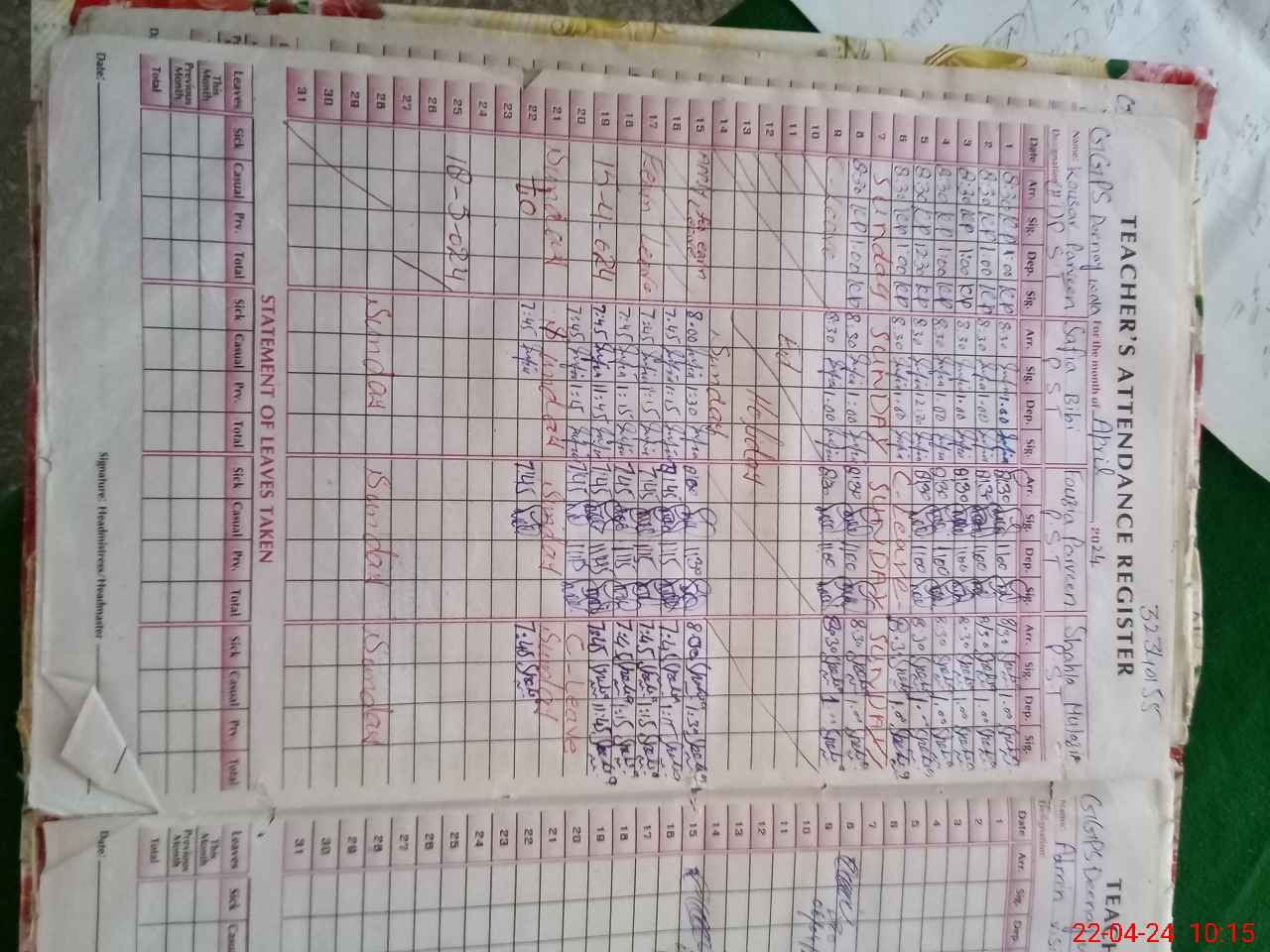 | Leave | Duty | Absent | Maternity | Medical | Ex- Pak |