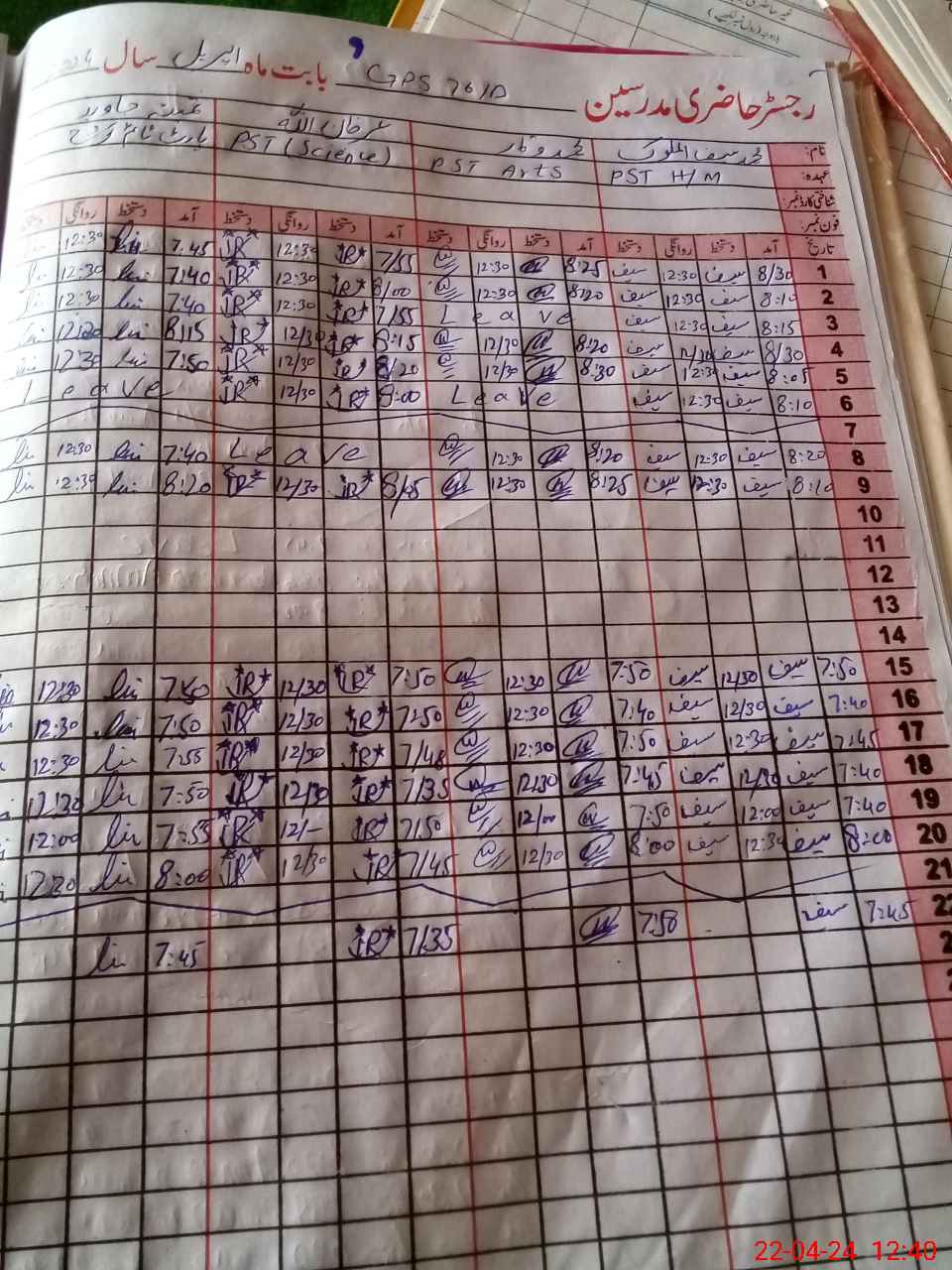 | Name: Mu**** Sa**** UlMa**** Designation: (School Headmaster's/Headmistress's) PST Phone/Cell Number: 03**** |