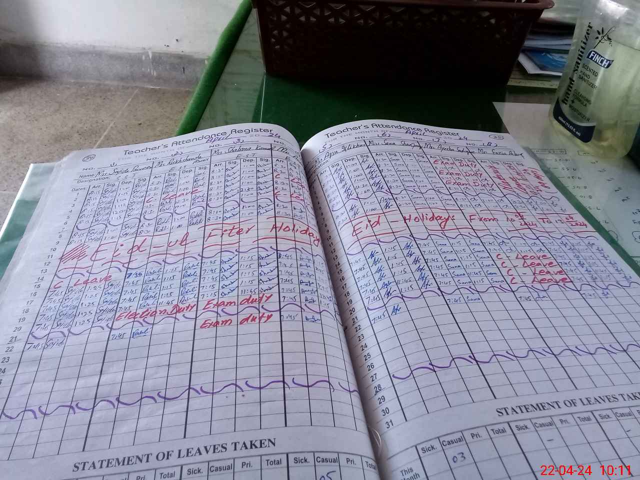 | Leave | Duty | Absent | Maternity | Medical | Ex- Pak |