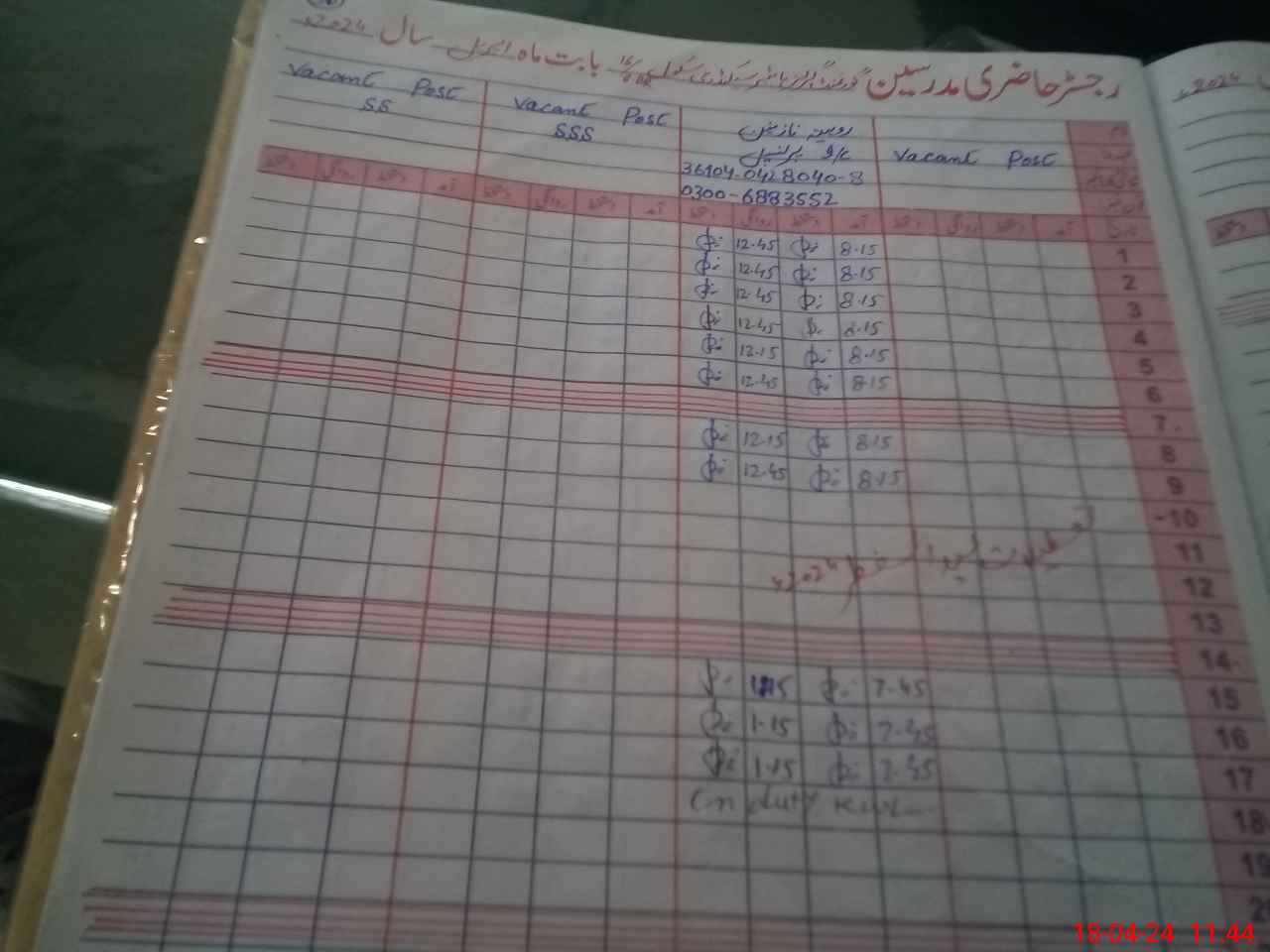 | CNIC | Full Name | Designation | R/C | Absence During Last Calender Month |
