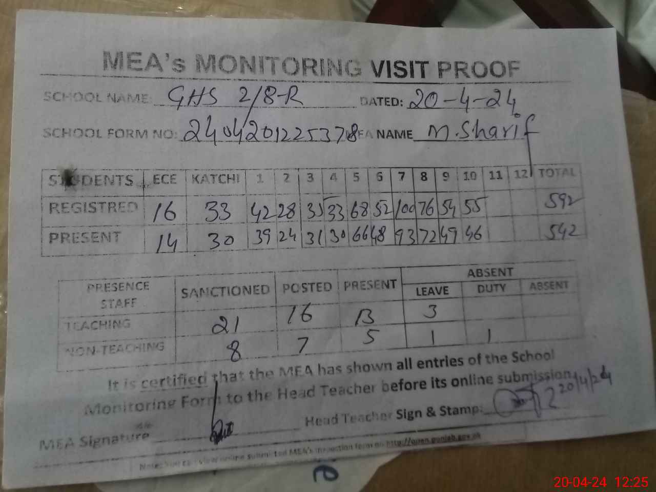 | EMIS Code: 36430028 | Name of School: GHS 2/8-R MIRZA PUR | |||