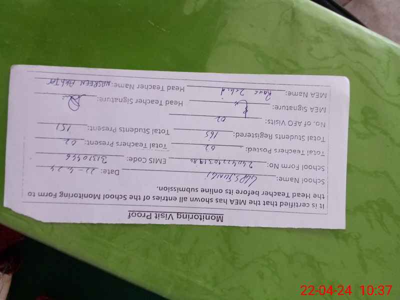 | EMIS Code: 31310446 | Name of School: GGPS MOZA JAHANGI | |||