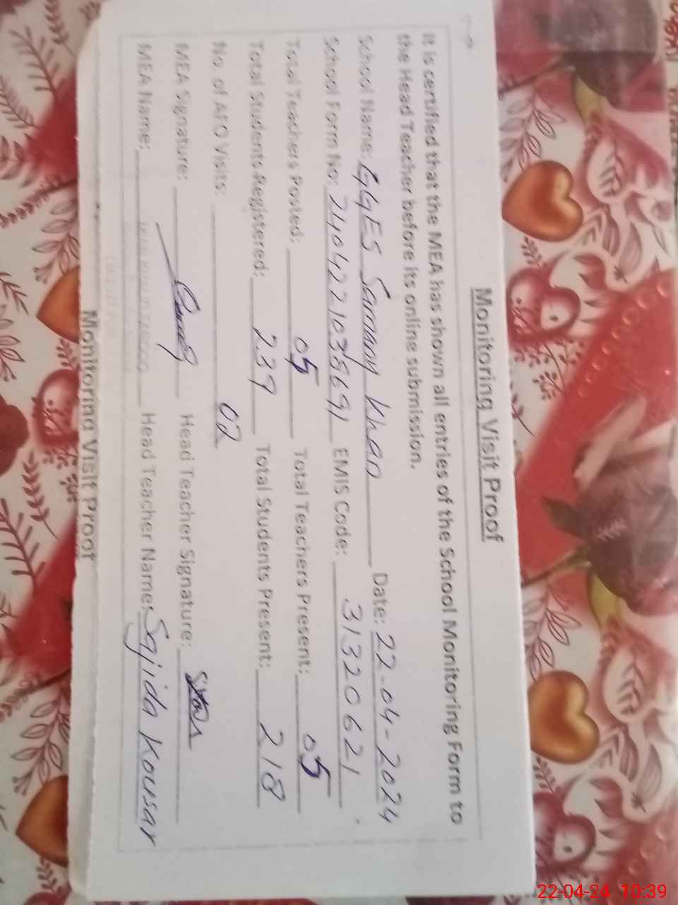 | EMIS Code: 31320621 | Name of School: GGES SAMANI KHAN | |||