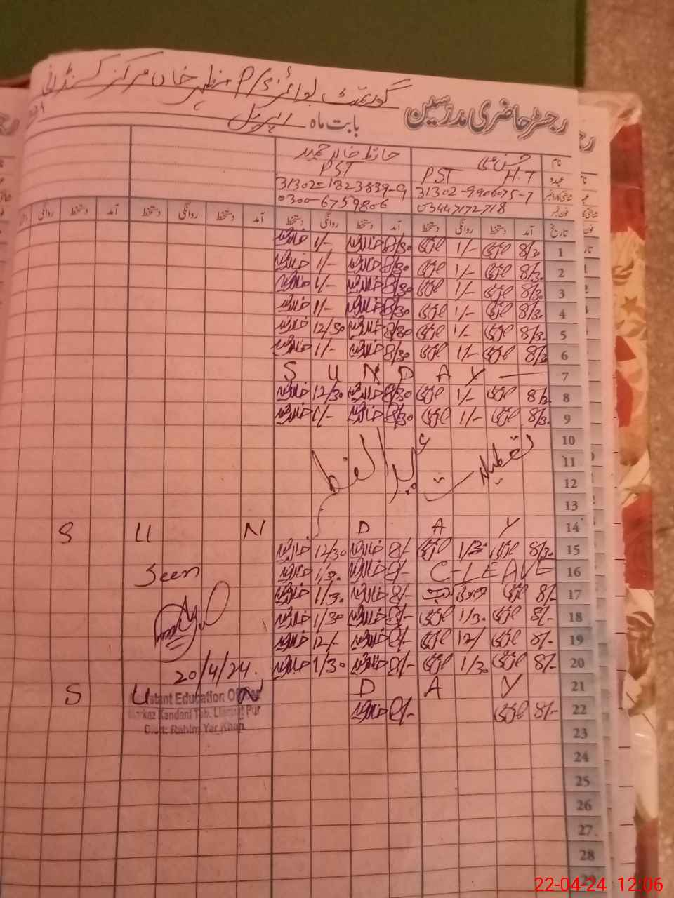 | Name: HA**** AL**** Designation: (School Headmaster's/Headmistress's) PST Phone/Cell Number: 03**** |