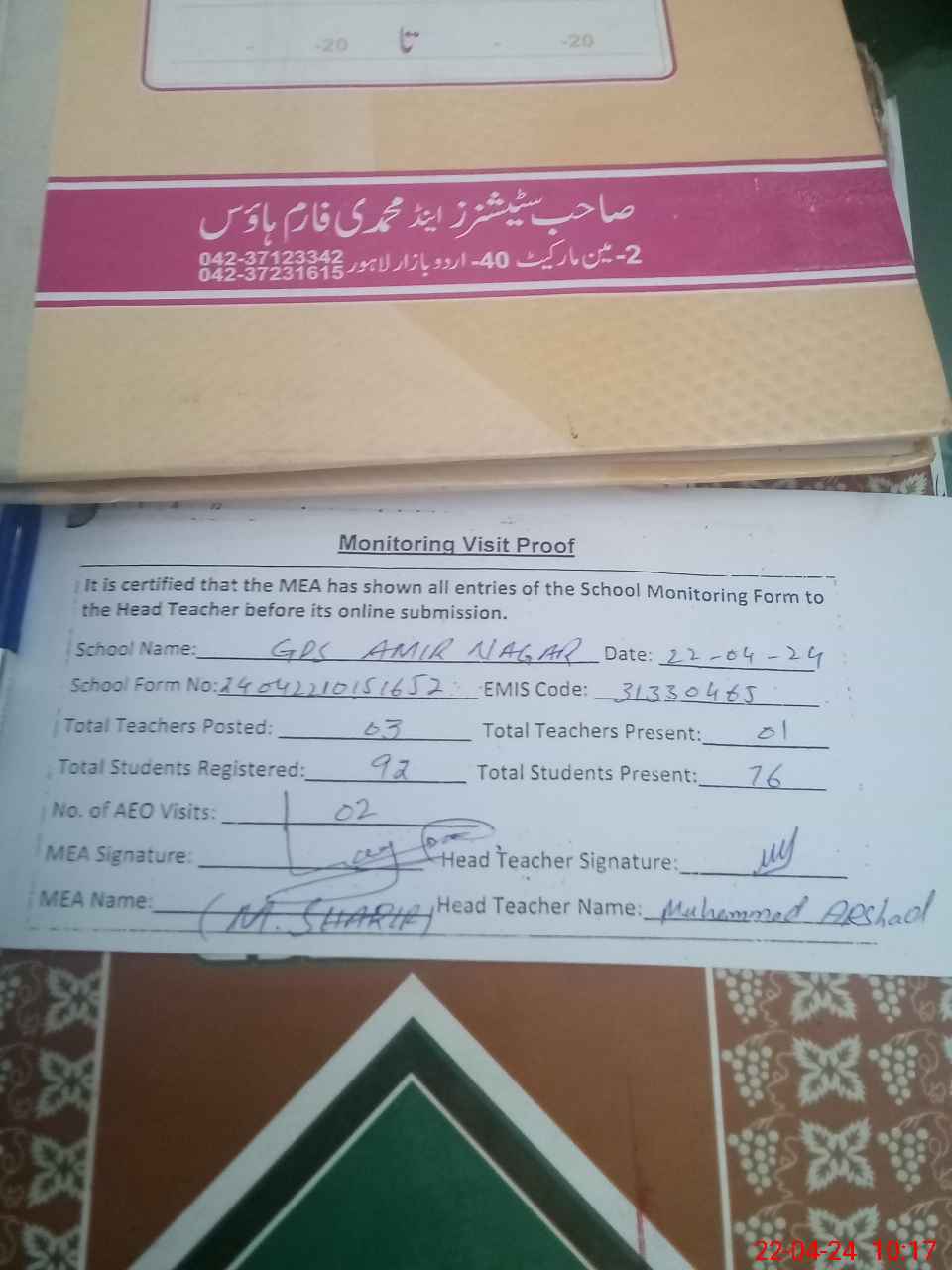 | EMIS Code: 31330465 | Name of School: GPS AMIR NAGAR | |||