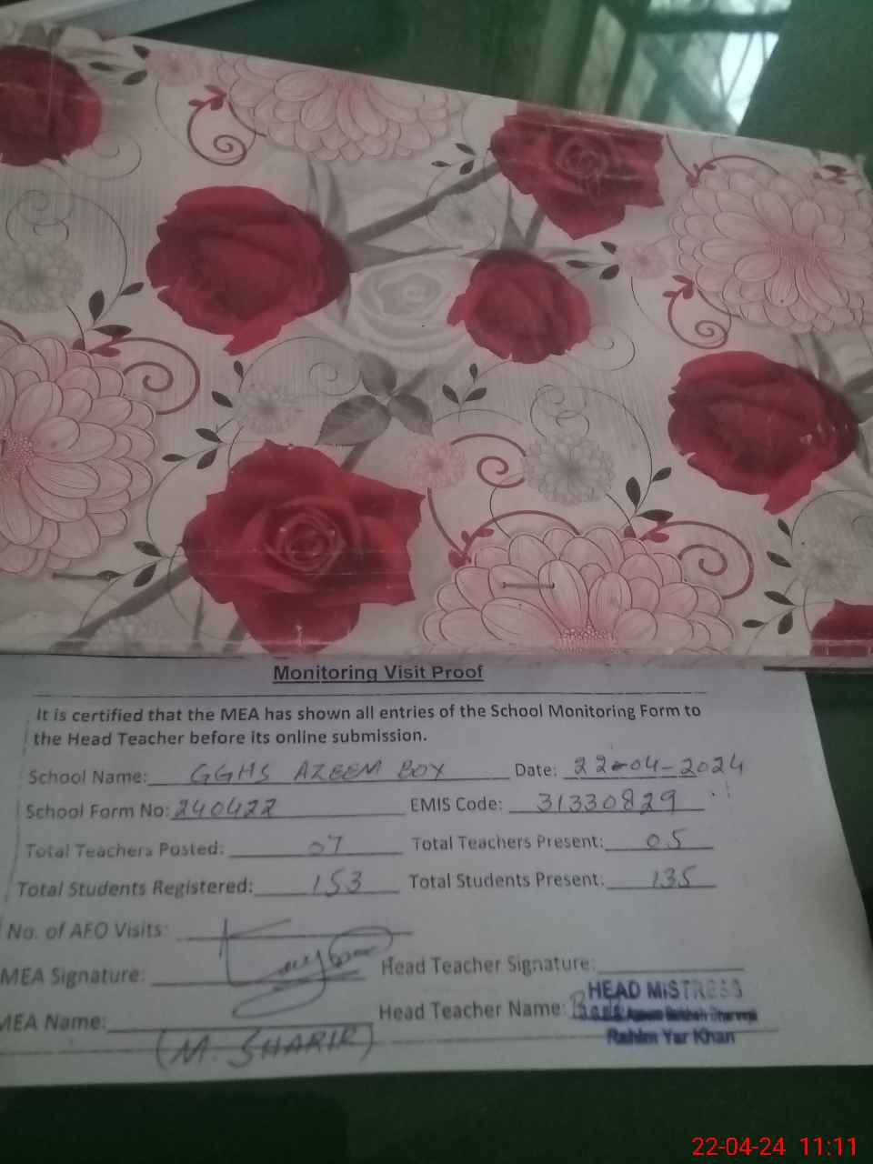 | EMIS Code: 31330829 | Name of School: GGHS AZEEM BUKHSH DHAREEJA | |||
