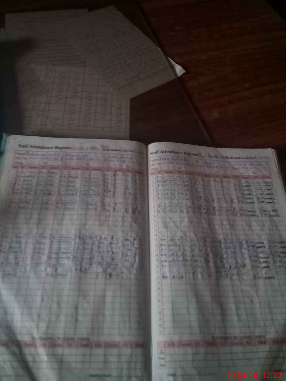 | CNIC | Full Name | Designation | R/C | Absence During Last Calender Month |