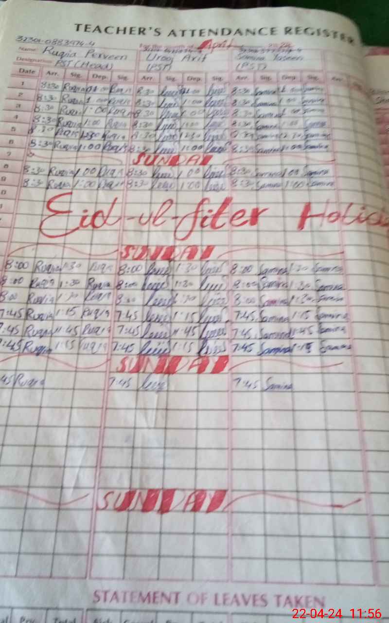 | CNIC | Full Name | Designation | R/C | Absence During Last Calender Month |