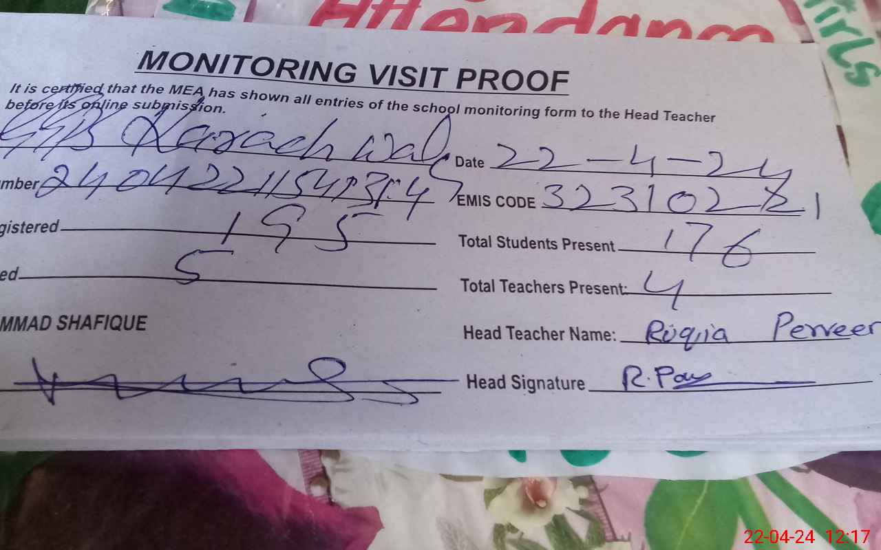 | EMIS Code: 32310221 | Name of School: GGPS KARCH WALA | |||