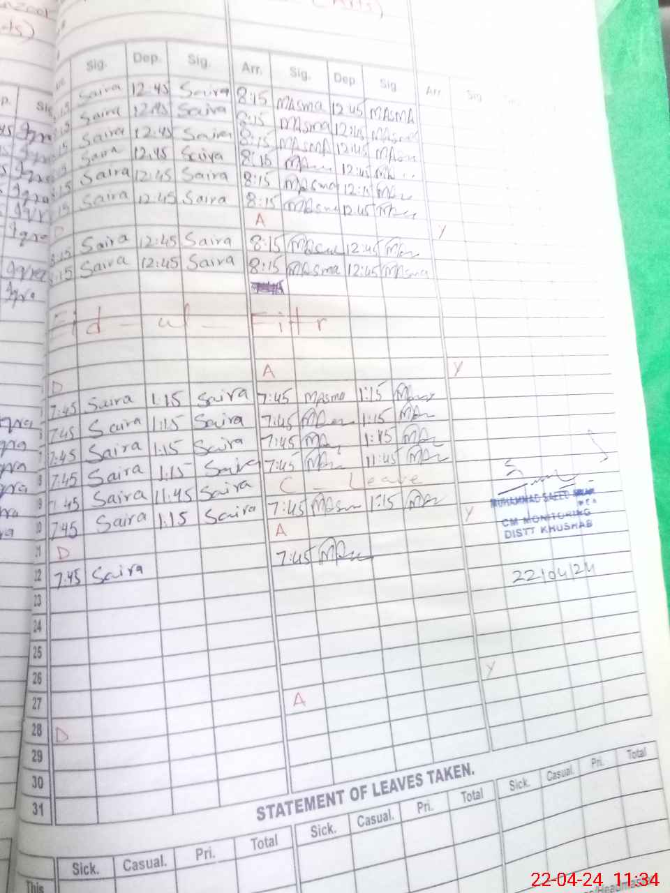 | 38**** | Iq**** Ma**** | PST | Regular | 2 | 0 | 0 | 0 | 0 | 0 | 0 | 0 | 2 | Casual |