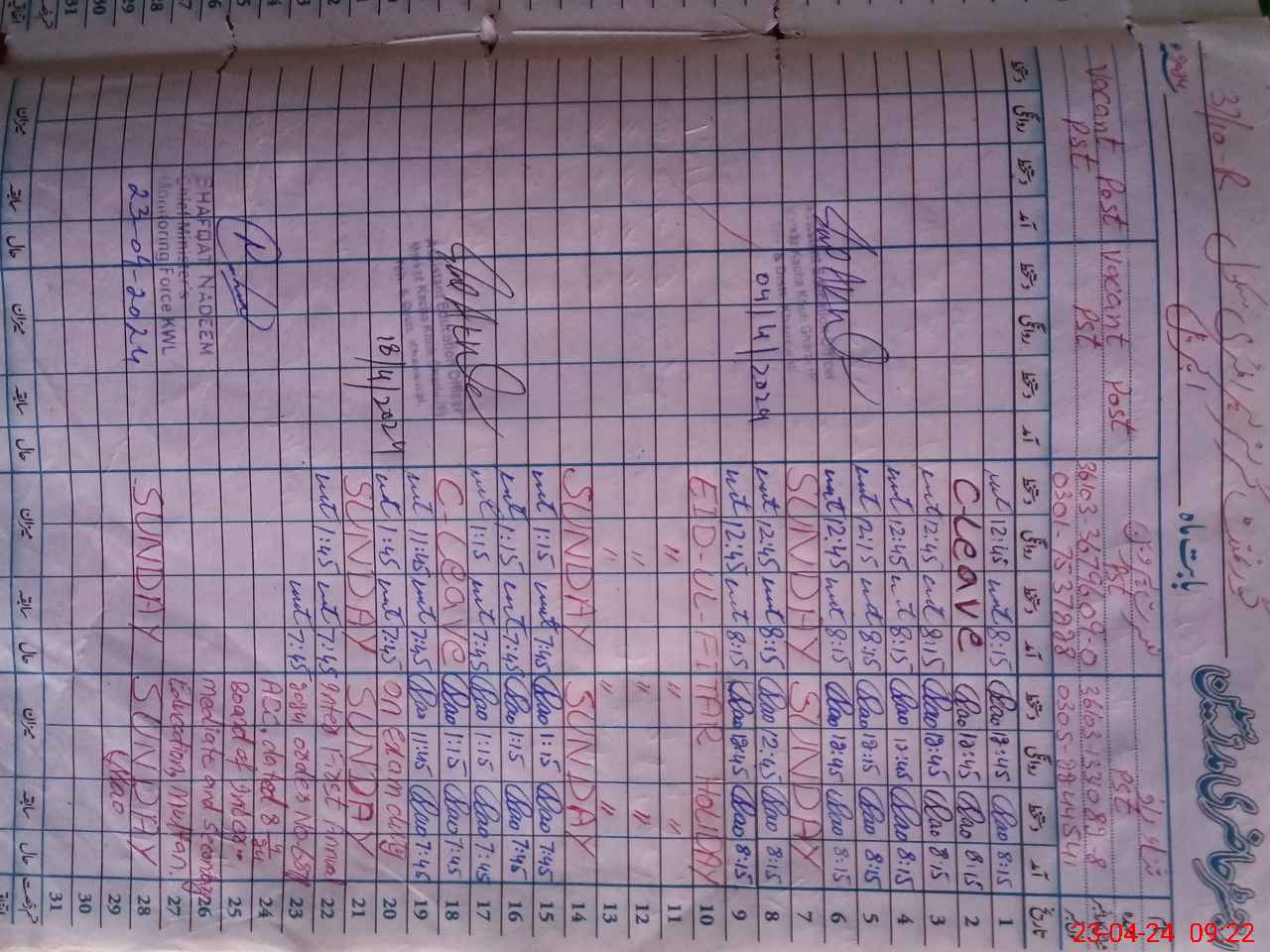 | Name: Sa**** Ra**** Designation: (School Headmaster's/Headmistress's) PST Phone/Cell Number: 03**** |