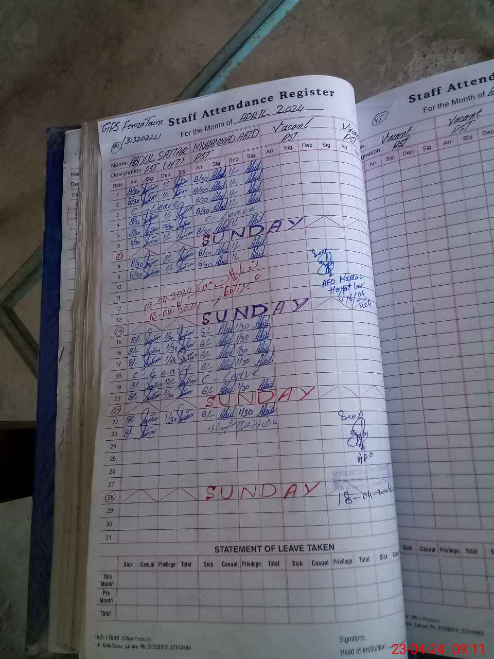 | Name: Mu**** Ab**** Designation: (School Headmaster's/Headmistress's) PST Phone/Cell Number: 03**** |