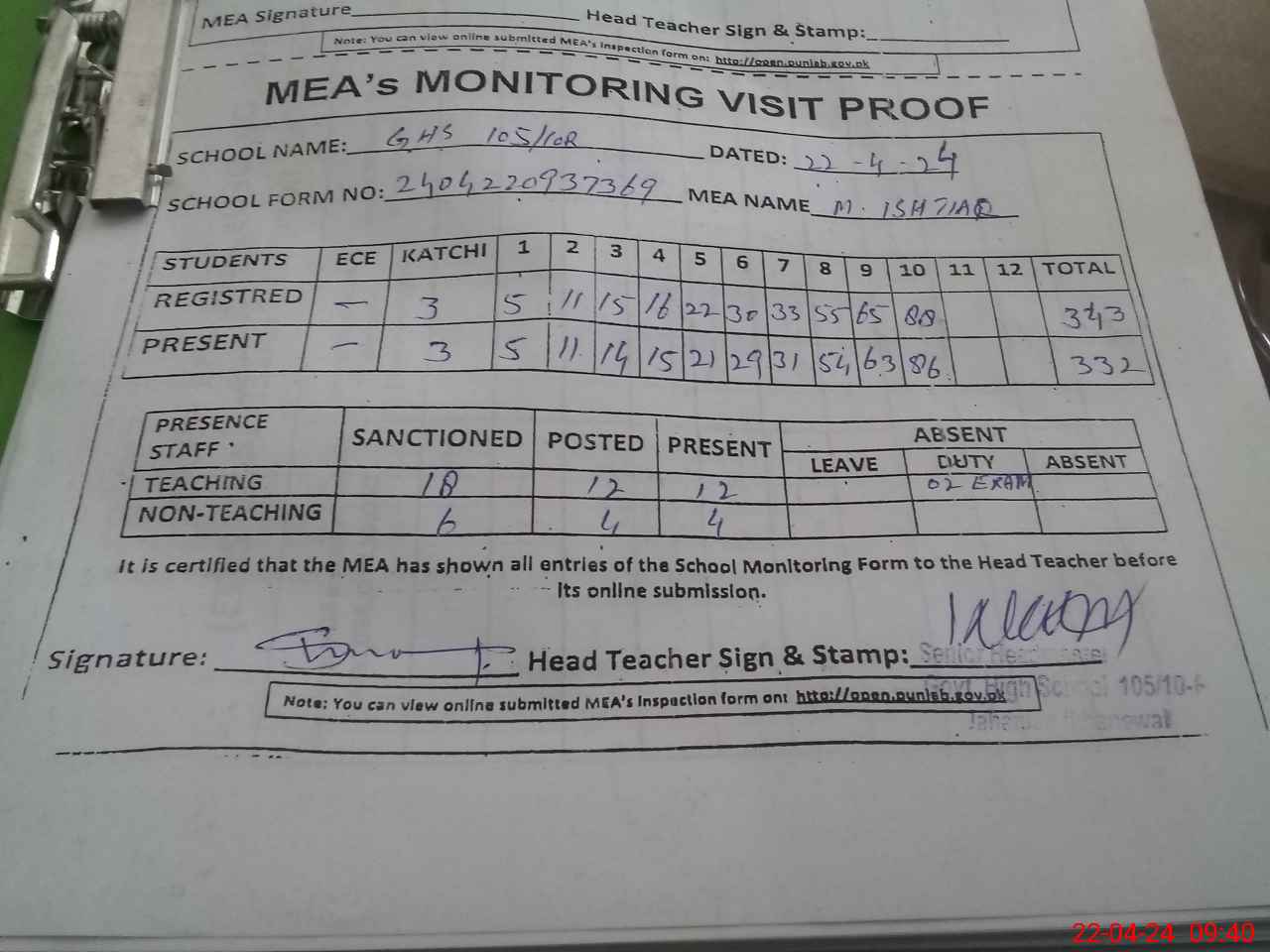 | EMIS Code: 36440039 | Name of School: GHS 105/10-R, JAHANIAN | |||