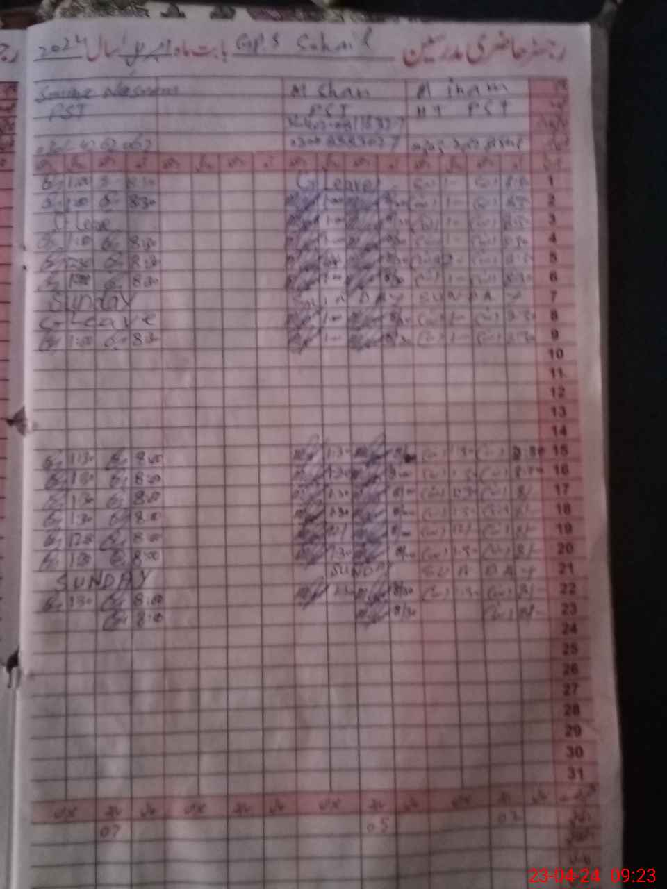 | CNIC | Full Name | Designation | R/C | Absence During Last Calender Month |