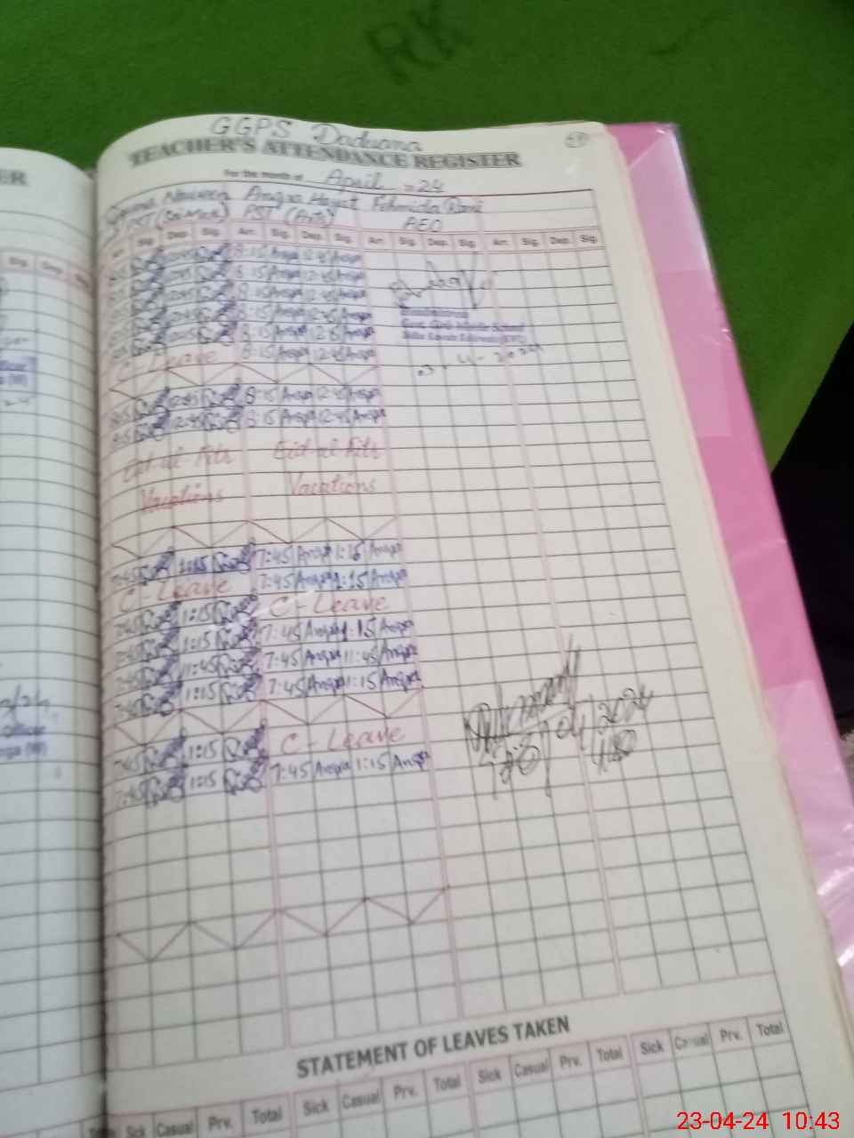| Leave | Duty | Absent | Maternity | Medical | Ex- Pak |
