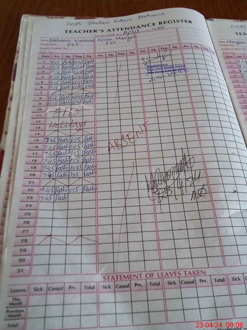 | 36**** | Ki**** Ma**** | 1 | 1 | 0 | 0 | 0 | 0 | 0 | 0 | 0 | 0 | 0 | Absent (Un-Authorized) |