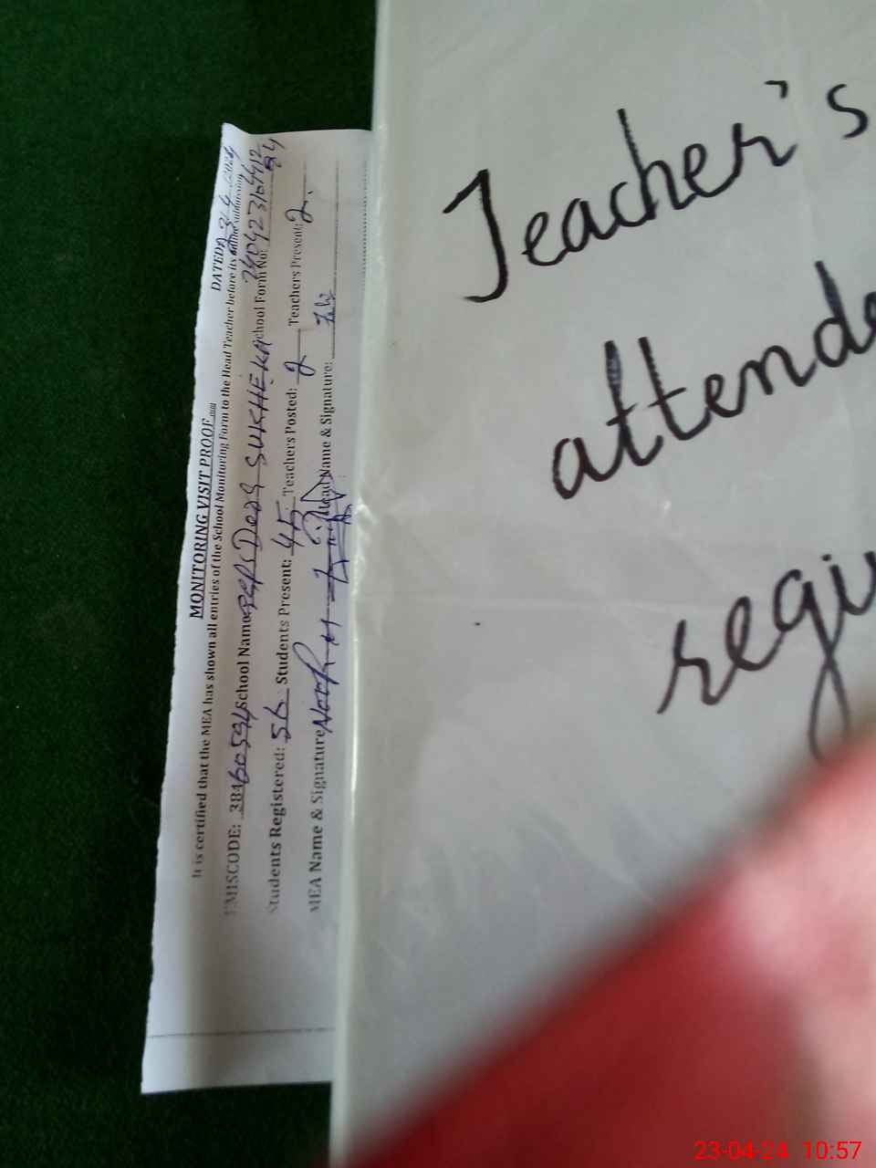 | Attendance Register | Head Teacher | MEA with School | Visit Proof |