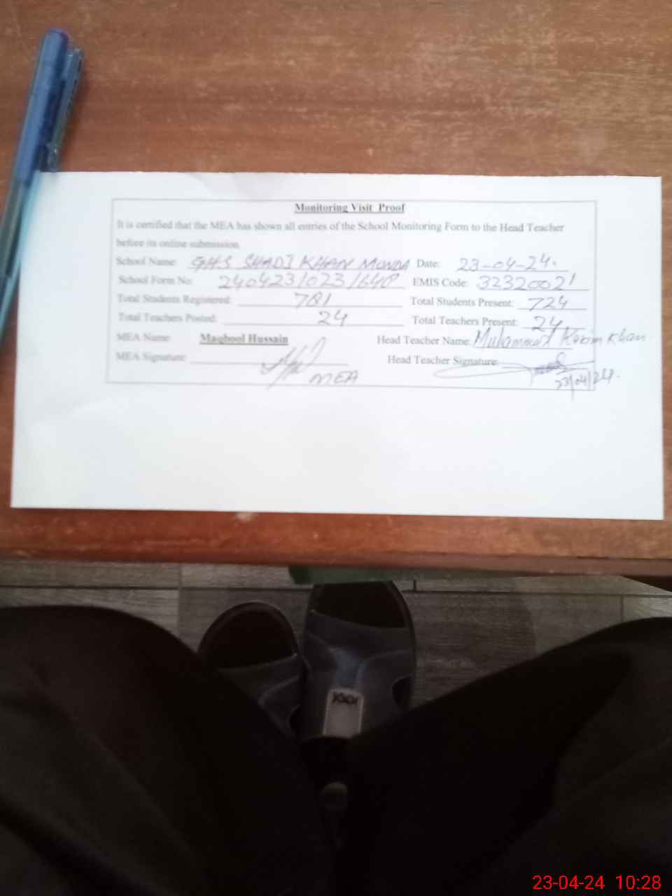 | EMIS Code: 32320021 | Name of School: GHS SHADI KHAN MUNDA | |||