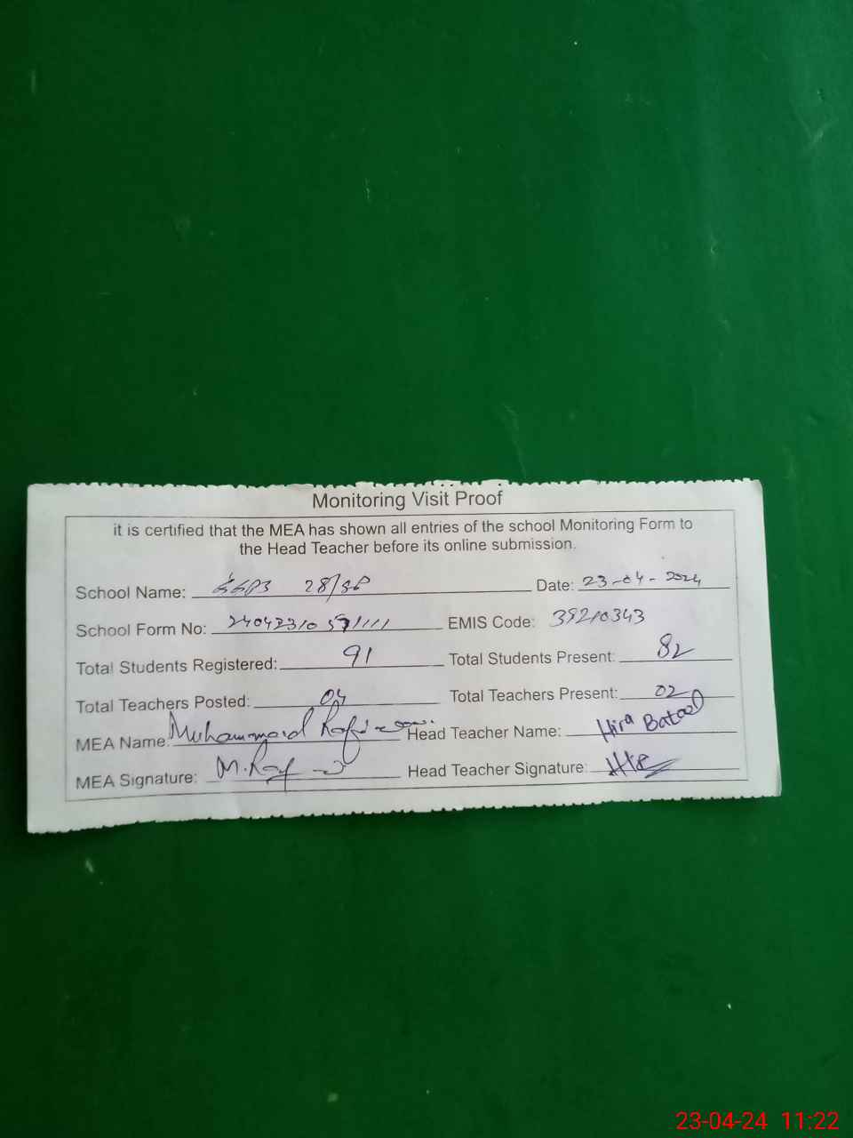 | EMIS Code: 39210343 | Name of School: GGPS 28 SP | |||