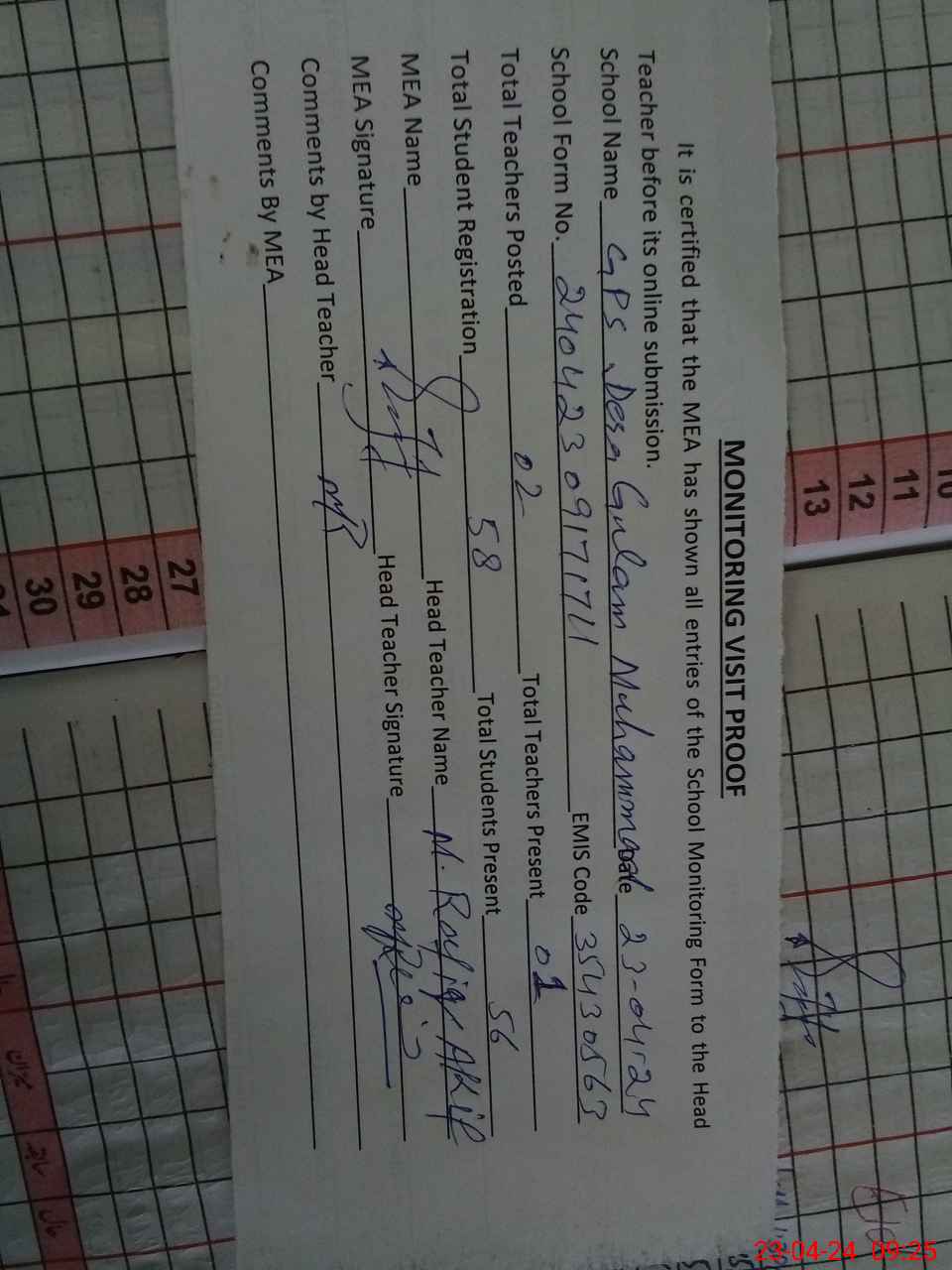 | EMIS Code: 35430563 | Name of School: GPS DERA GHULAM MUHAMMAD | |||