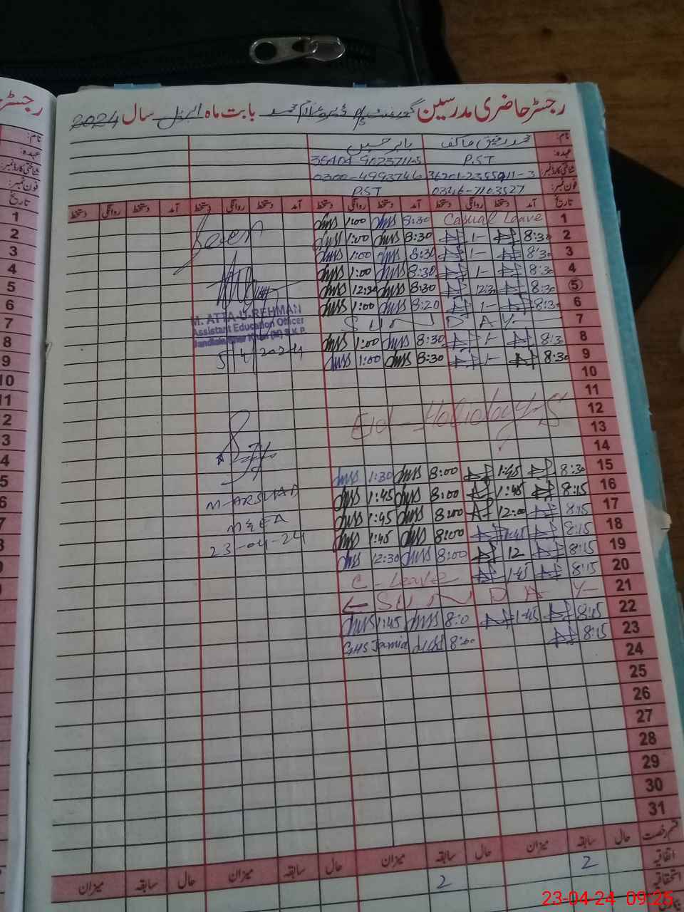 | Name: M.RA**** AQ**** Designation: (School Headmaster's/Headmistress's) PST Phone/Cell Number: 03**** |