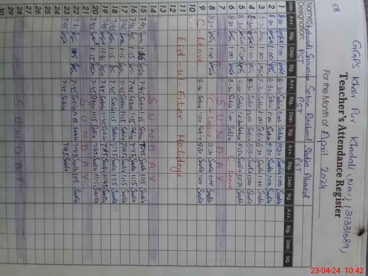 | Name: Sh**** Sa**** Designation: (School Headmaster's/Headmistress's) PST Phone/Cell Number: 03**** |