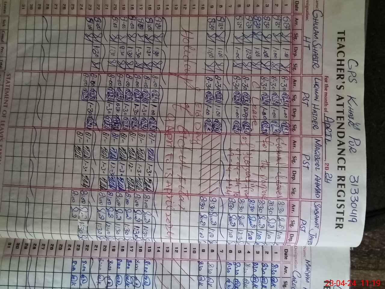 | Name: GH**** SH**** Designation: (School Headmaster's/Headmistress's) PST Phone/Cell Number: 03**** |