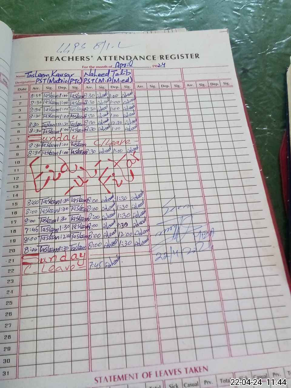 | 35**** | Ta**** Ka**** | PST | Regular | 4 | 0 | 0 | 0 | 0 | 0 | 0 | 0 | 4 | Casual |