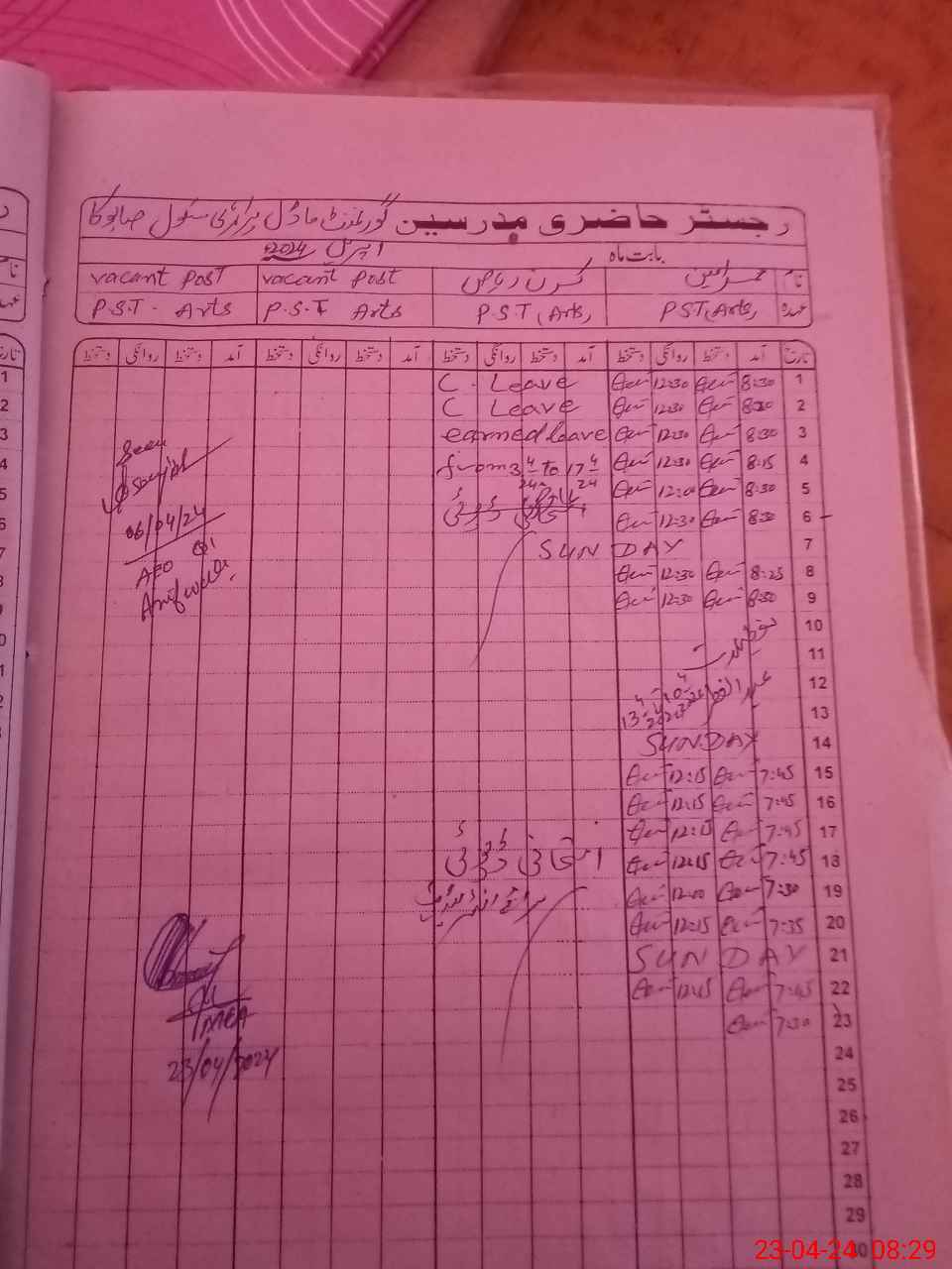 | Name: MU**** AM**** Designation: (School Headmaster's/Headmistress's) PST Phone/Cell Number: 03**** |