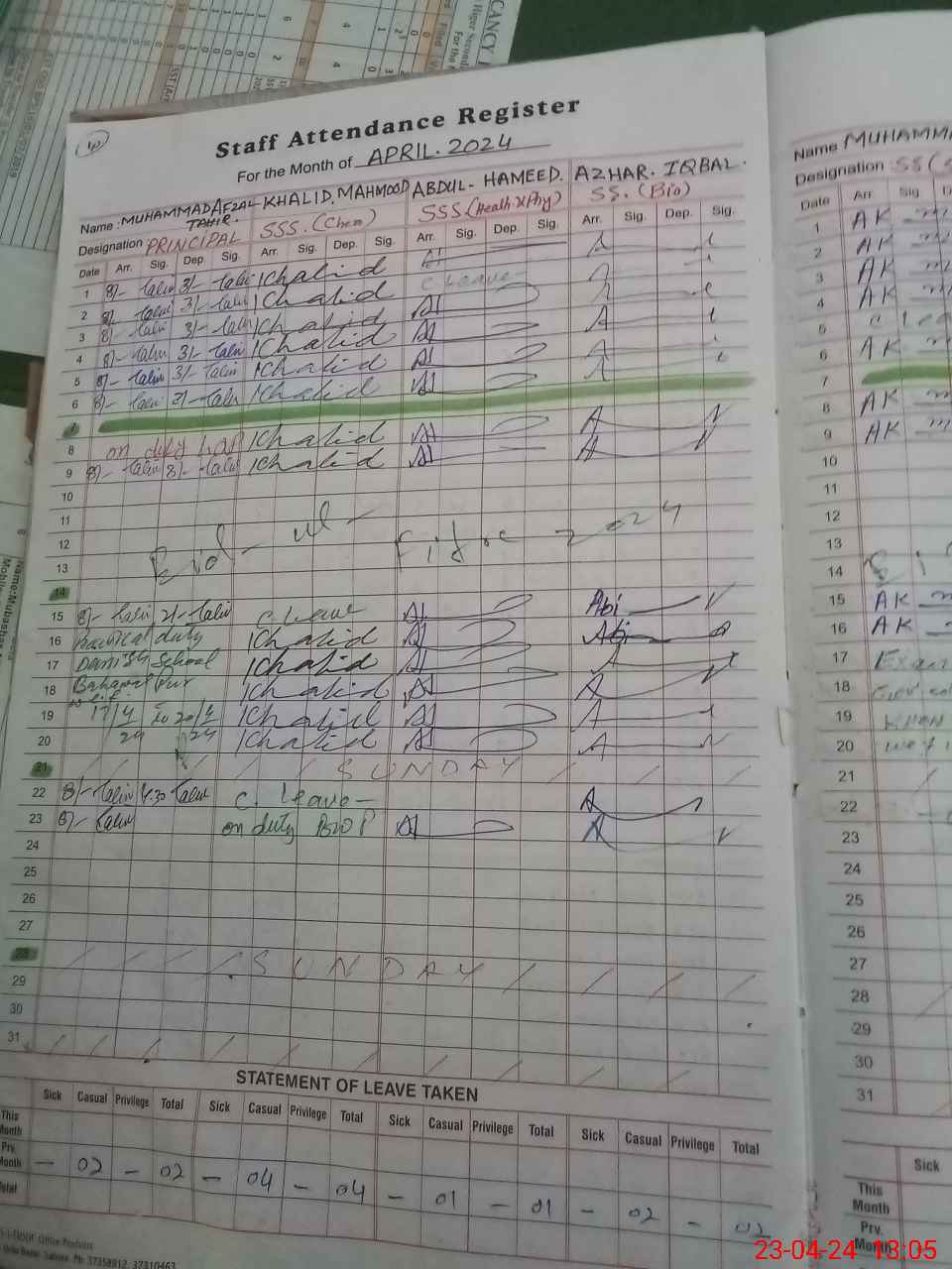 | 31**** | Sh**** Ah**** Sh**** | 1 | 2 | 0 | 0 | 0 | 0 | 0 | 0 | 0 | 2 | Exam Duty | |