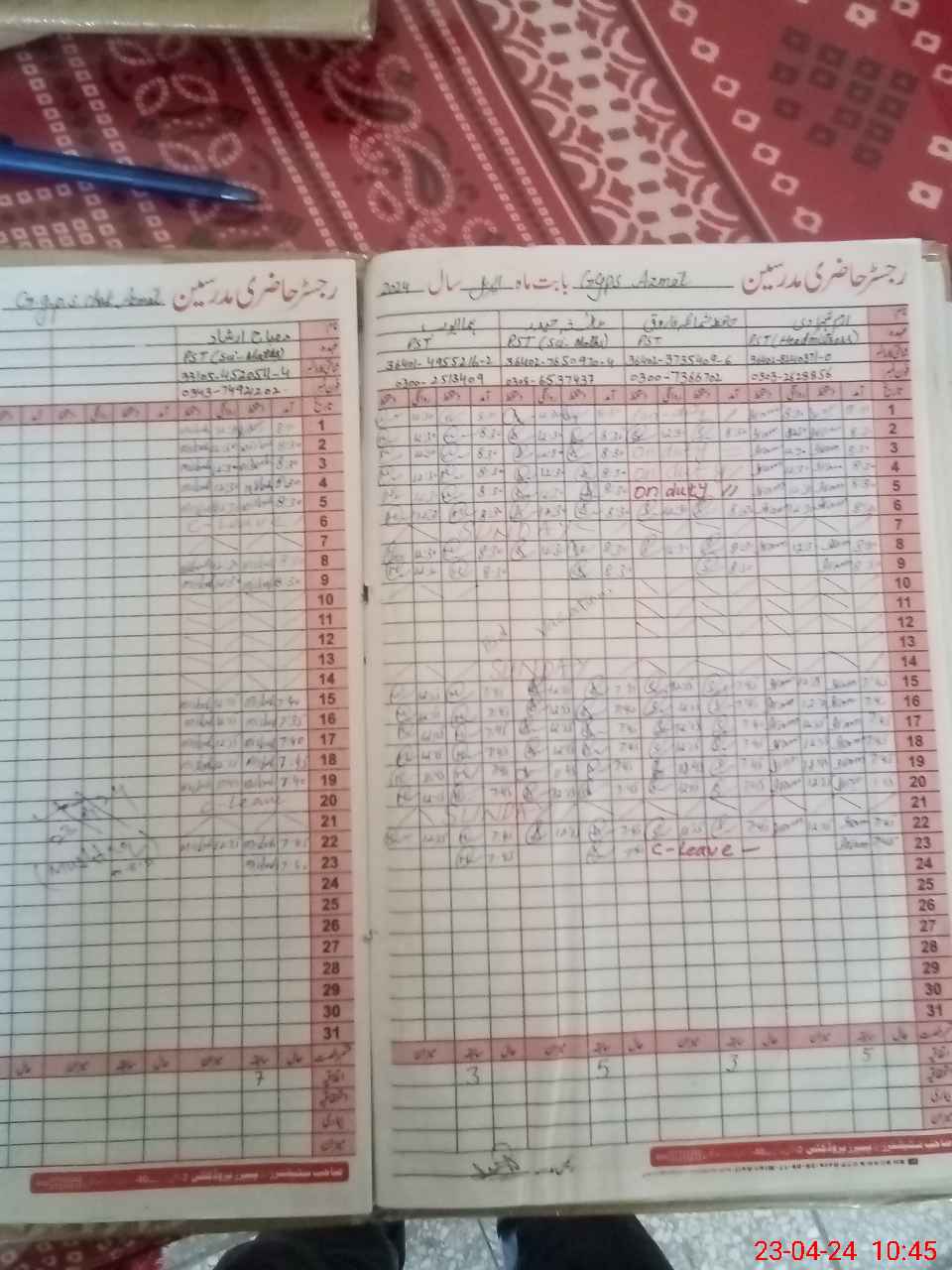 | Leave | Duty | Absent | Maternity | Medical | Ex- Pak |