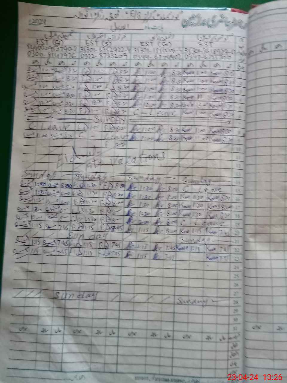 | Leave | Duty | Absent | Maternity | Medical | Ex- Pak |