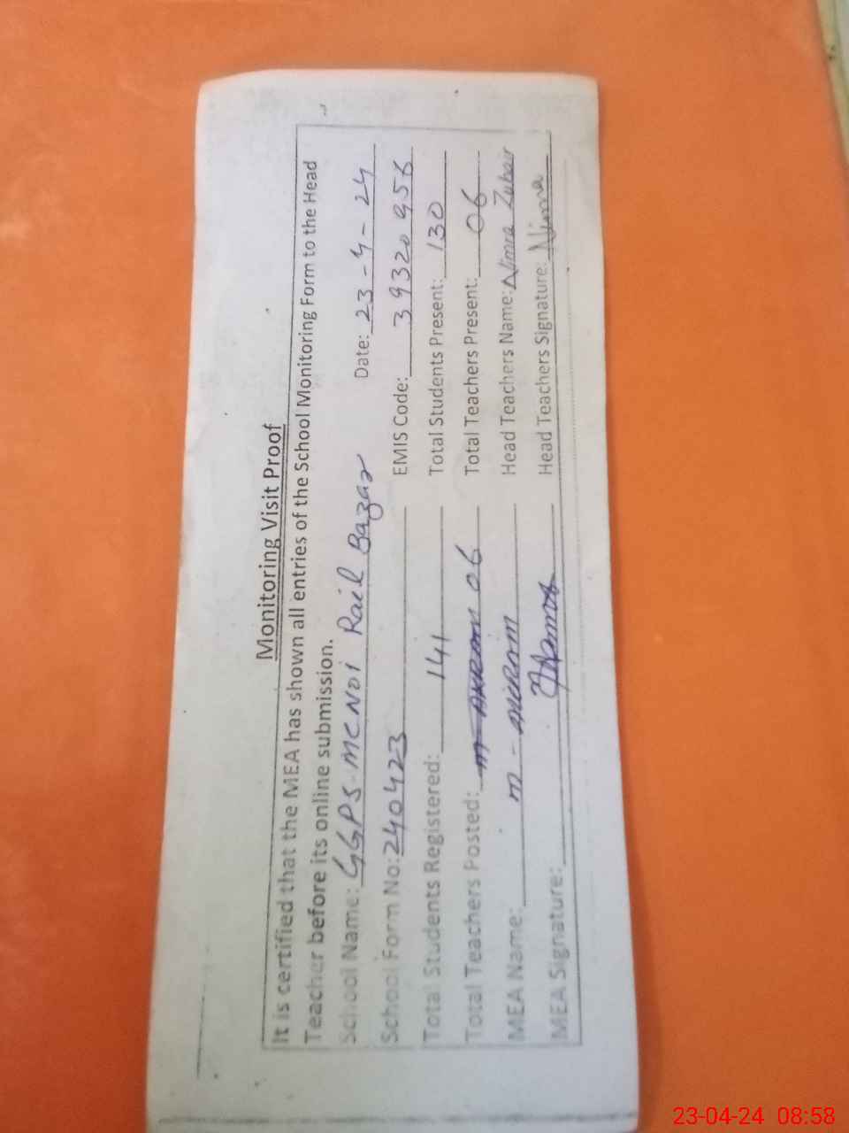 | EMIS Code: 39320956 | Name of School: GGPS MC NO. 1 RAIL BAZAR | |||