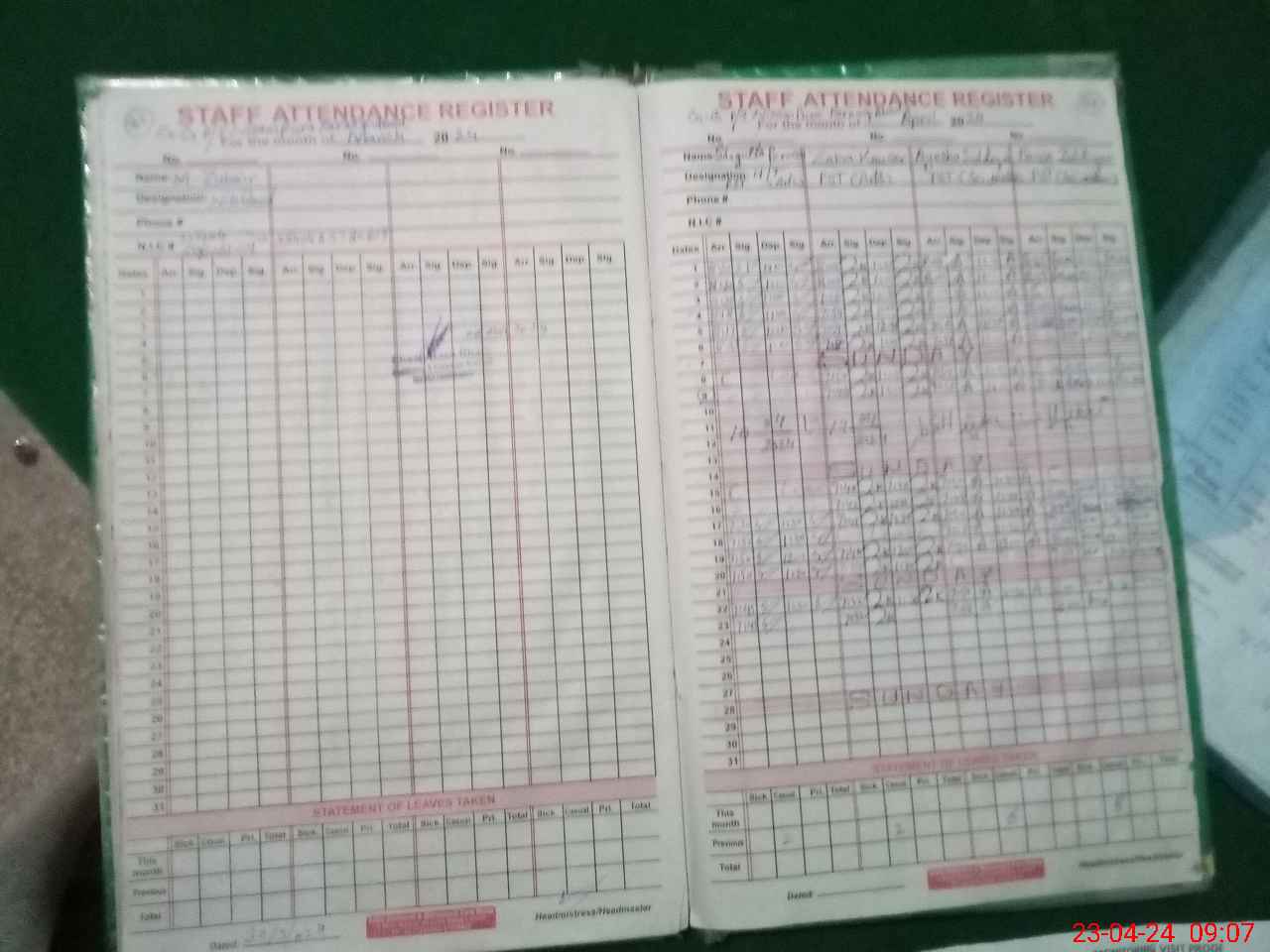 | CNIC | Full Name | Designation | R/C | Absence During Last Calender Month |