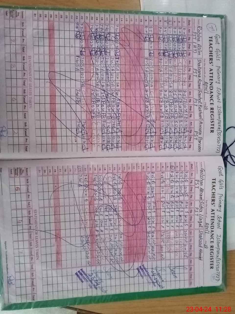 | CNIC | Full Name | Designation | R/C | Absence During Last Calender Month |