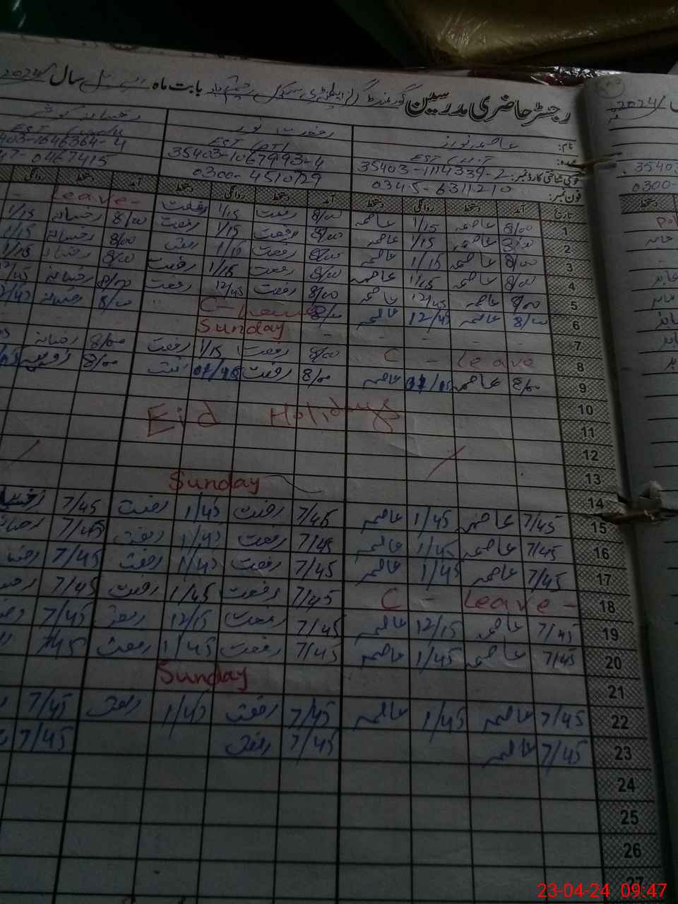 | CNIC | Full Name | Designation | R/C | Absence During Last Calender Month |