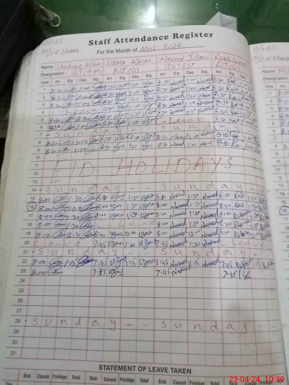 | Leave | Duty | Absent | Maternity | Medical | Ex- Pak |