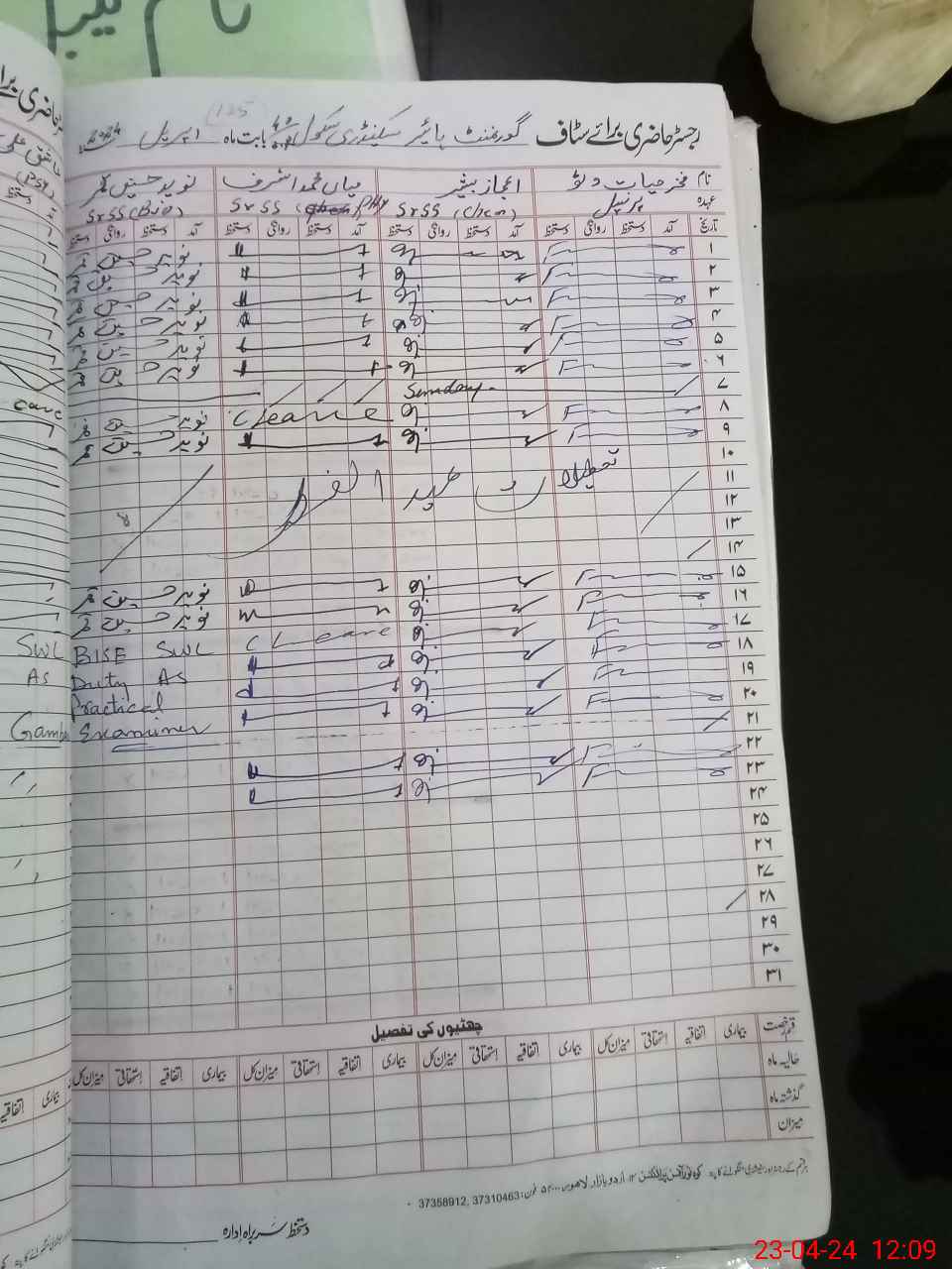 | CNIC | Full Name | Designation | R/C | Absence During Last Calender Month |