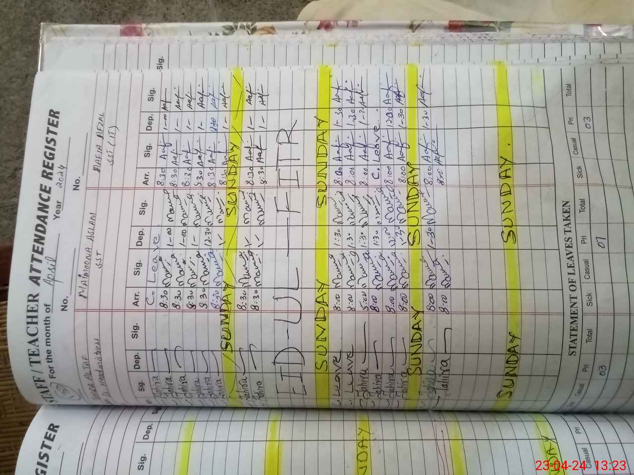 | Remarks (Use Separate Page if Required): Attendance of attached teacher Jamila bibi is not being marked in teacher attendance register however she was physically present in school during MEA visit as per attachment notification dated 9 April and her name has been added in temporary list | |||||