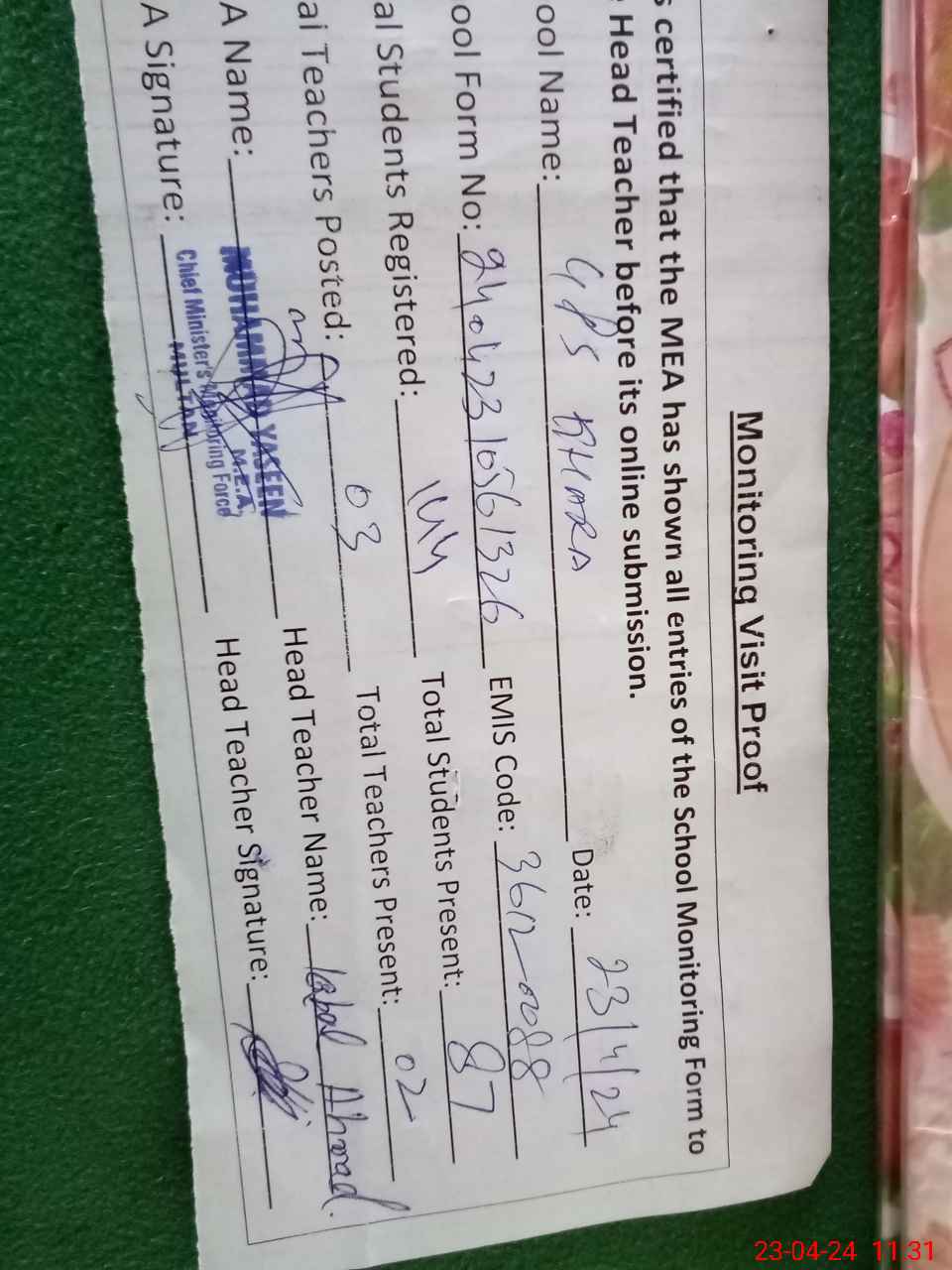 | EMIS Code: 36120088 | Name of School: GPS KHARA MOZA KHARA P/O CHAK SARAY | |||