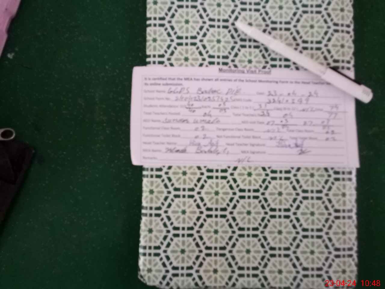 | Attendance Register | Head Teacher | MEA with School | Visit Proof |