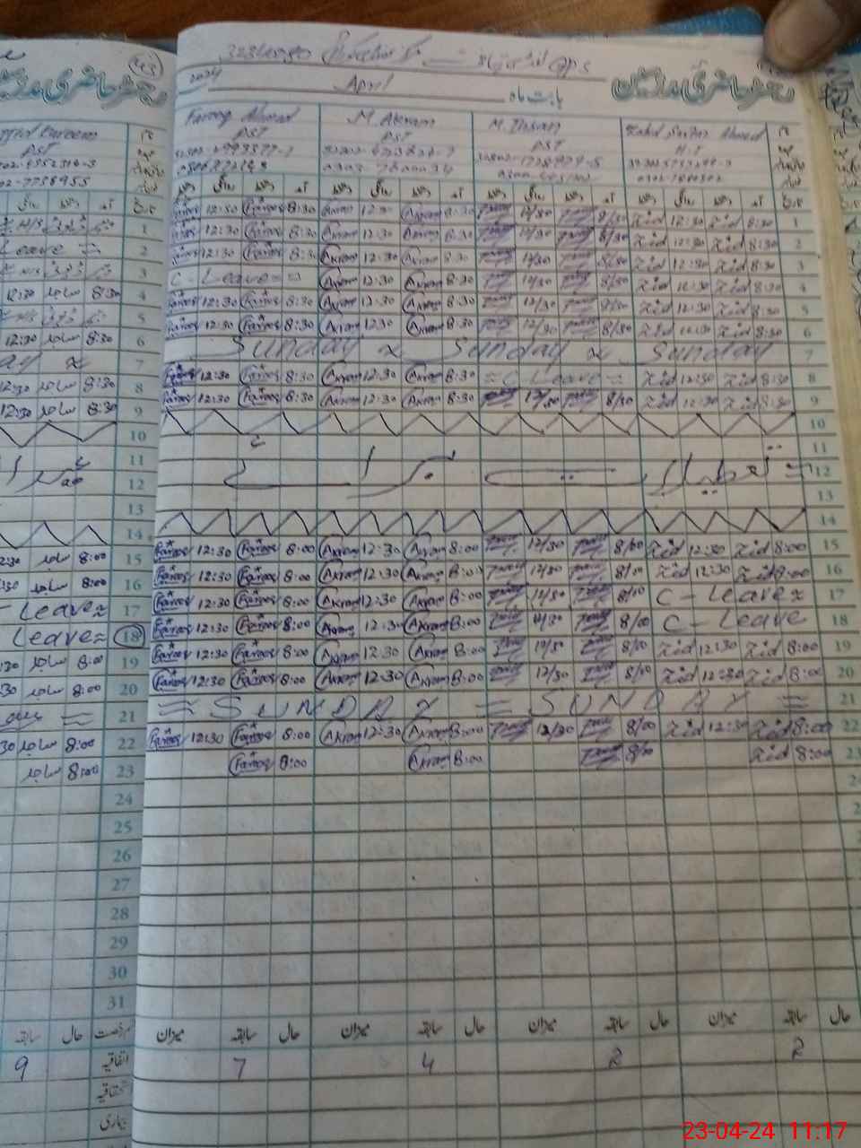 | CNIC | Full Name | Designation | R/C | Absence during last cal. month |