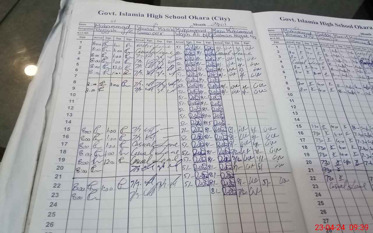 | CNIC | Full Name | Designation | R/C | Absence During Last Calender Month |